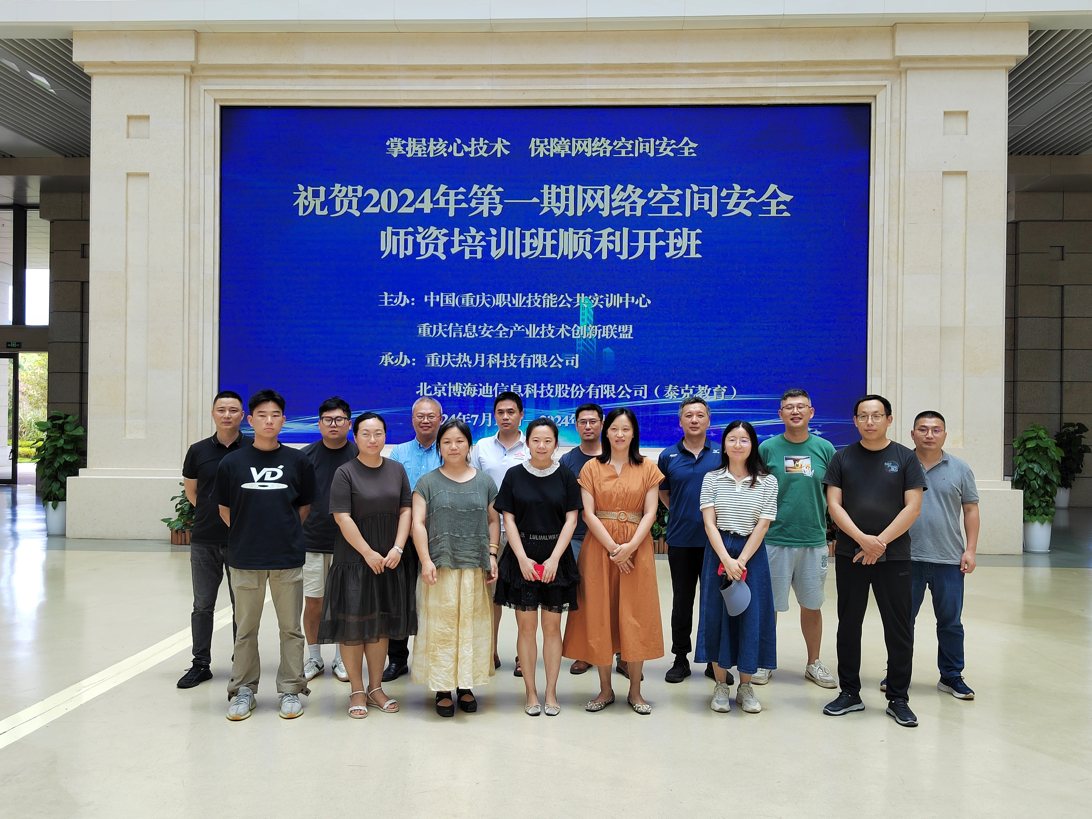 为切实解决高校网络空间安全专业教师实践能力提升及教学资源建设需求,助力网络安全人才培养及学科发展,推动人才的教学、培训和实践等工作快速落地,2024年7月15日—7月19日,联盟以“求实创新、产教融合”为宗旨,联合重庆热月科技在中国(重庆)职业技能公共实训中心联合举办了2024年第一期网络空间安全师资培训班。