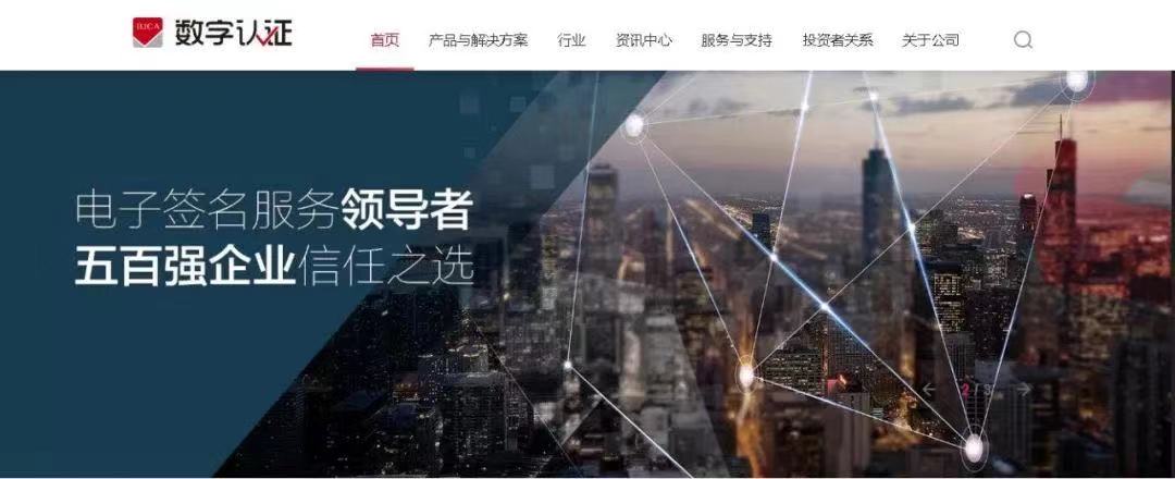 北京数字认证股份有限公司(股票简称:数字认证,股票代码:300579)是国内领先的网络信任与数字安全服务提供商,电子认证服务领域第一家上市企业。2001年成立以来,数字认证始终致力于网络空间安全及信任体系建设,保障用户数字资产安全、业务可信开展、信息系统可靠运行。业务覆盖政府、金融、卫生、教育、交通、企业等市场领域,电子认证服务市场占有率位居行业前列,电子签名应用领域确立市场领先优势。