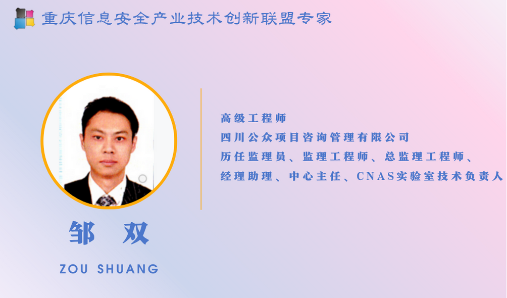 具有信息安全管理高级工程师证书,并多次参与省、市级政府智慧城市规划、项目建设方案评审等数据治理、信息安全评价等相关工作。(如:成都第31届世界大学生夏季运动会智慧餐饮平台、成都第31届世界大学生夏季运动会智慧环保提升项目、四川省大数据中心政务信息化平台项目、四川省林业和草原局四川省古树名木信息管理系统、四川省成都市农业农村局数字农业农村大数据平台、武警警官学校智慧信息系统工程实验室建设等)
